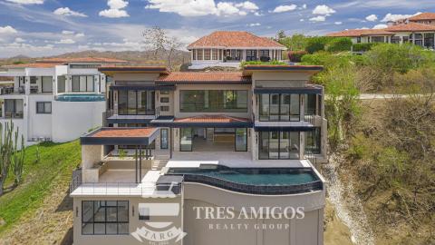 Large Multi Level Ocean View 6 Bed, 7 Bath Luxury Home with Multiple Terraces, Pool and Garage. This exceptional ocean view estate offers 4,378 air-conditioned square feet and 7,251 total square feet including expansive terraces, a resort-style pool zone, and generous covered parking, all thoughtfully designed for both luxury living and effortless entertaining. Arriving via the spacious four-car carport, you are welcomed into an impressive entrance lounge featuring a wet bar, relaxed living area, and billiards zone, all oriented toward breathtaking ocean vistas. A striking staircase leads to the lower main level where a grand great room with soaring cathedral ceilings seamlessly integrates a chef’s kitchen outfitted with top-tier appliances including a Sub-Zero refrigerator and Wolf range, oven, and more. Floor-to-ceiling sliding glass doors open to a spectacular covered terrace showcasing an oversized infinity-edge pool, separate standalone jacuzzi, and a fully equipped outdoor kitchen with BBQ and wet bar, creating a true indoor-outdoor living experience. The home features six bedrooms and six-and-a-half bathrooms, including four ocean view primary suites—two on the upper level and two flanking the great room—all with en suite bathrooms and private outdoor showers for a spa-like ambiance. A fifth bedroom or den is conveniently located next to a large storage pantry on the main level alongside a full shared bath serving the pool and living areas, while the upper level also includes a powder room for guests. The lower level offers a versatile gym or sixth bedroom complete with a Murphy bed and full bathroom. Completing the property is a two-car garage with its own separate driveway, ideal for secure owner storage or additional vehicles, making this residence a rare blend of scale, privacy, and elevated coastal sophistication. Perched at the pinnacle of the prestigious Monte Paraíso gated community and surrounded by multimillion-dollar residences, the home enjoys commanding panoramic ocean and mountain views over Playa Hermosa, the dramatic Peninsula Papagayo, the serene Bahía Culebra, and the distant Guanacaste volcanic mountain range. Its prime location places you just minutes from the beach, as well as the boutique dining and conveniences of Playa Hermosa, while the vibrant town of Playas del Coco—offering extensive shopping, restaurants, nightlife, services, healthcare, and world-class watersports—is only a short drive away. The property is also ideally situated approximately 25 minutes from Daniel Oduber Quirós International Airport.