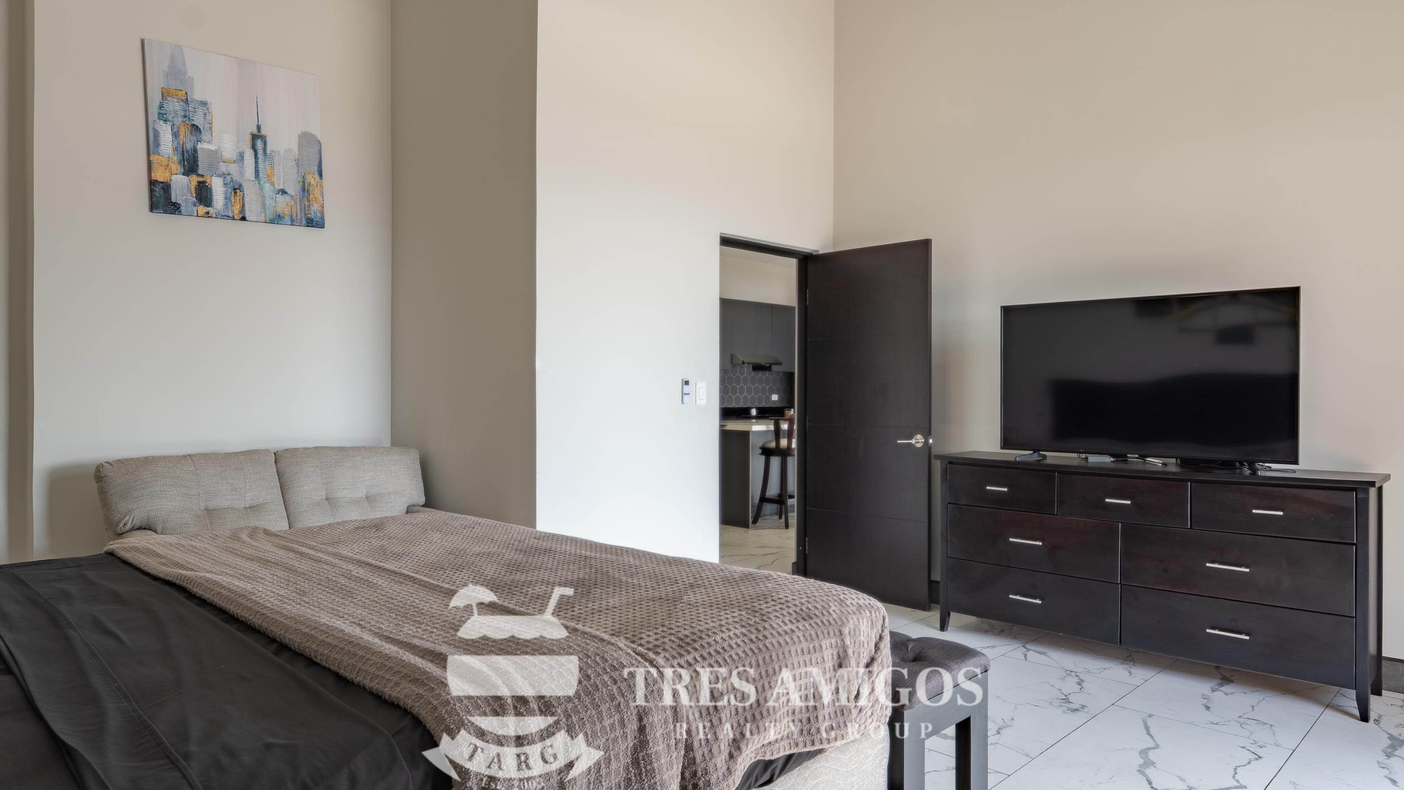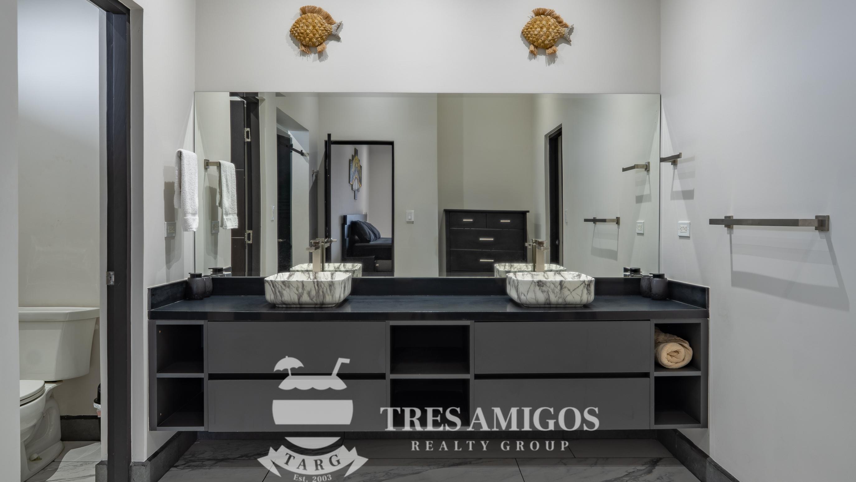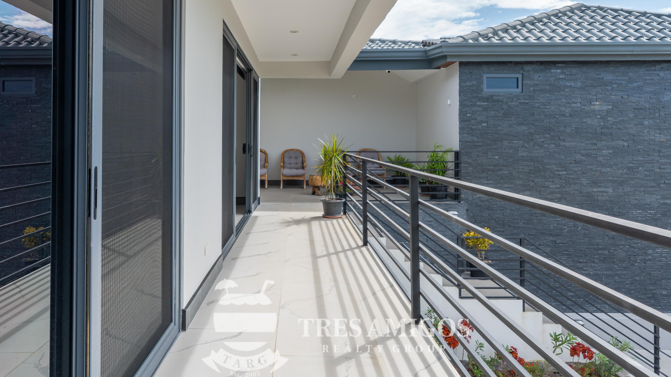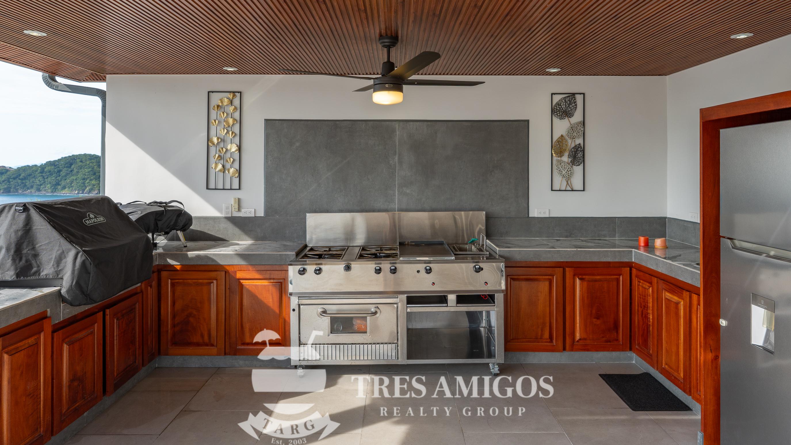 The upper floor hosts a versatile ocean-view suite ideal as a guest casita, private office, or studio apartment. It opens directly onto a private terrace complimented with a spectacular rooftop terrace, perfectly positioned for sunset cocktails, stargazing, or intimate gatherings with panoramic views extending from the bay to the luxury hotels of Papagayo.