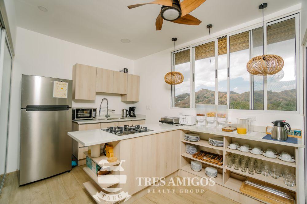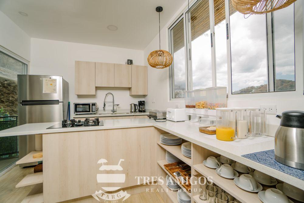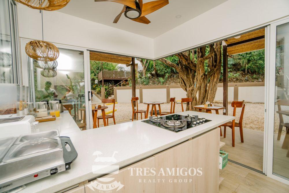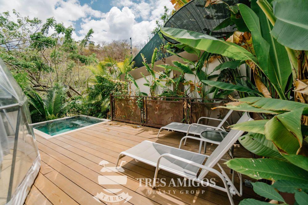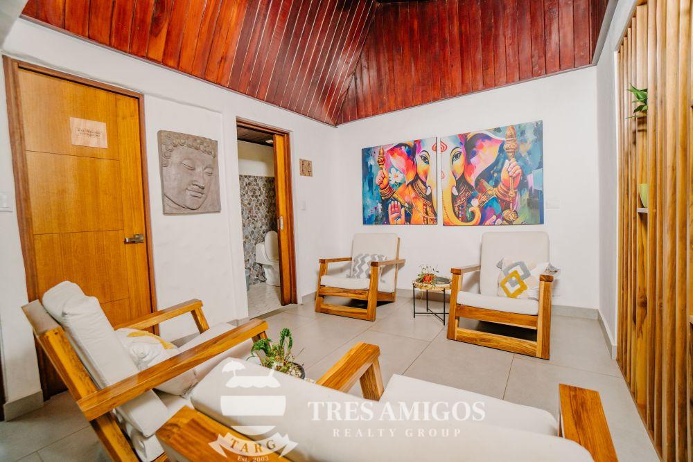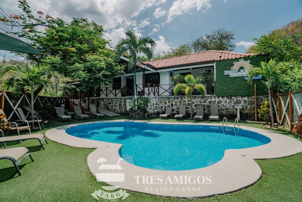 These adjacent boutique properties—Hotel Ocotal and Tortuga Verde Glamping Domes—are offered together as a fully turnkey hospitality investment. They are ideally located a short walk from Ocotal Beach and just 2 km from Playas del Coco. Hotel Ocotal features eight spacious guest rooms, 8.5 bathrooms, a staff room, a fully equipped kitchen, a comfortable sitting area, and a dedicated workstation suitable for remote workers. The hotel sits on a 1,150 m² lot, while the glamping domes occupy an additional 1,462 m². Fully renovated in 2023, the hotel now boasts modern finishes, updated bathrooms, flat-screen TVs, air conditioning, and strong rental demand. Guests enjoy a tropical swimming pool with loungers, an outdoor restaurant with a commercial kitchen and breakfast service, a co-working area, and several inviting social spaces. The room configuration includes one Standard Single room with a double bed; four Double Rooms with two double beds; two Queen Rooms with two queen-sized beds; and one Family Triple room with three beds—offering excellent flexibility and maximizing occupancy and revenue potential.