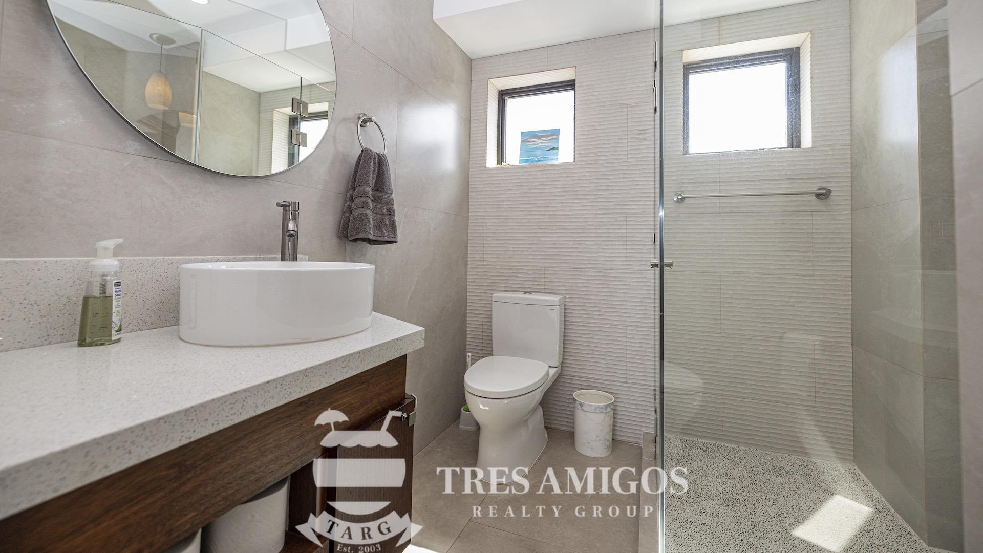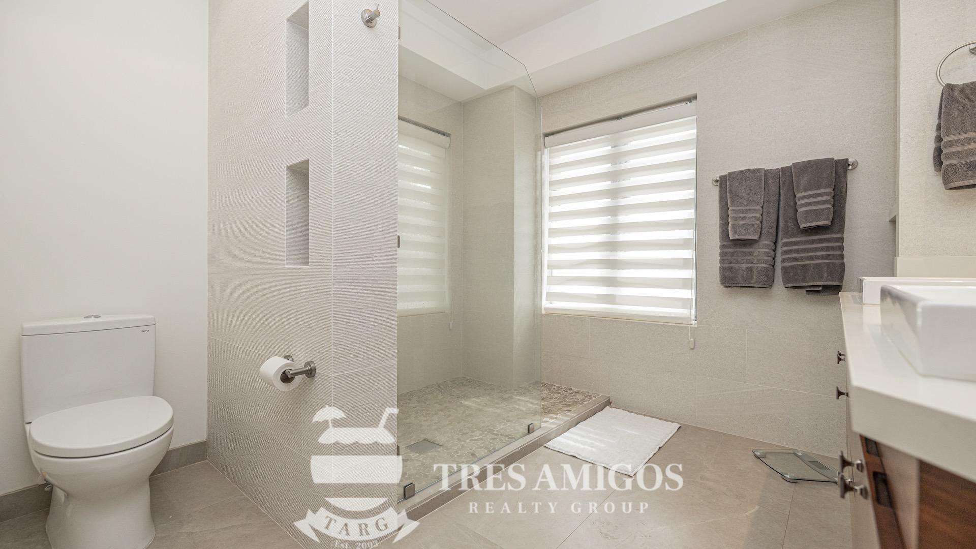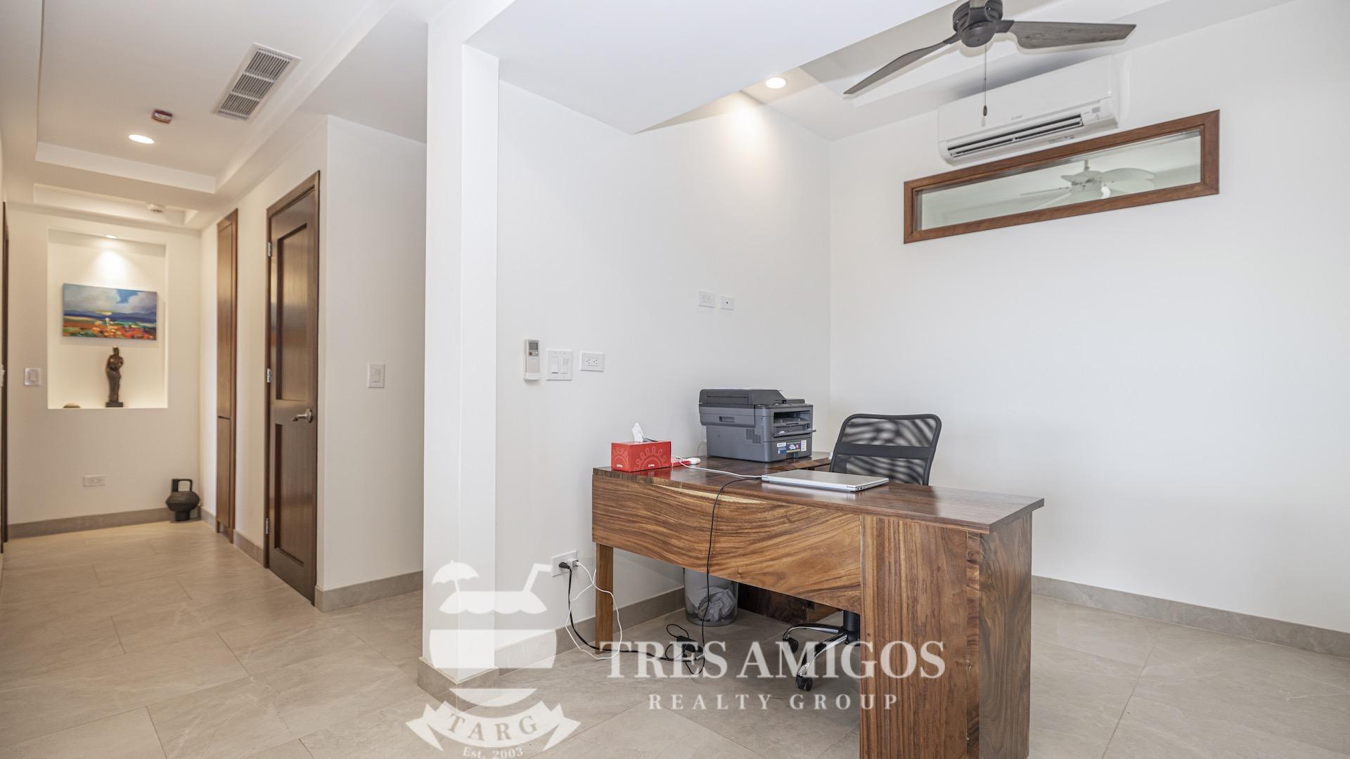 Perched within The Jaguar Village as part of the exclusive Hacienda del Mar community, this refined ocean-view condominium delivers effortless one-level luxury with sweeping panoramic views from the kitchen, dining, living areas, and master suite, enhanced by two covered ocean-view terraces—one extending from the living room and the other from the dining area, with additional access from the primary bedroom—creating seamless indoor-outdoor living. Spanning 1,733 square feet of efficient, air-conditioned space, each private residence features two bedrooms, a dedicated office, and three elegant bathrooms, including two ensuite, finished with locally sourced hardwood cabinetry and doors, granite countertops, porcelain tile flooring, and premium American Standard, Kohler, and Moen fixtures throughout. Designed with sustainability and privacy in mind, these LEED-qualified residences include PELLA low-E, argon-filled glass doors and windows, advanced insulation, elevator access from secure underground parking, and a boutique layout with only two units per floor and no shared walls. Residents also enjoy the exceptional lifestyle of Hacienda del Mar, offering a clubhouse with a two-tier infinity pool, fitness center, tennis and pickleball courts, on-site dining, and a future private beach club, all just minutes from Playa Panamá, Playa Hermosa, Playas del Coco, essential services, and Guanacaste International Airport.