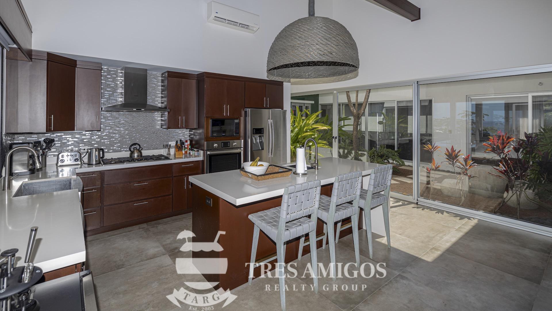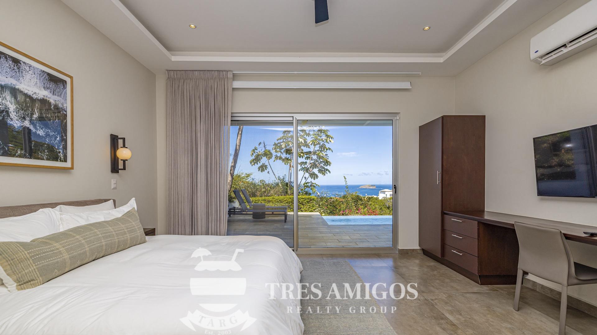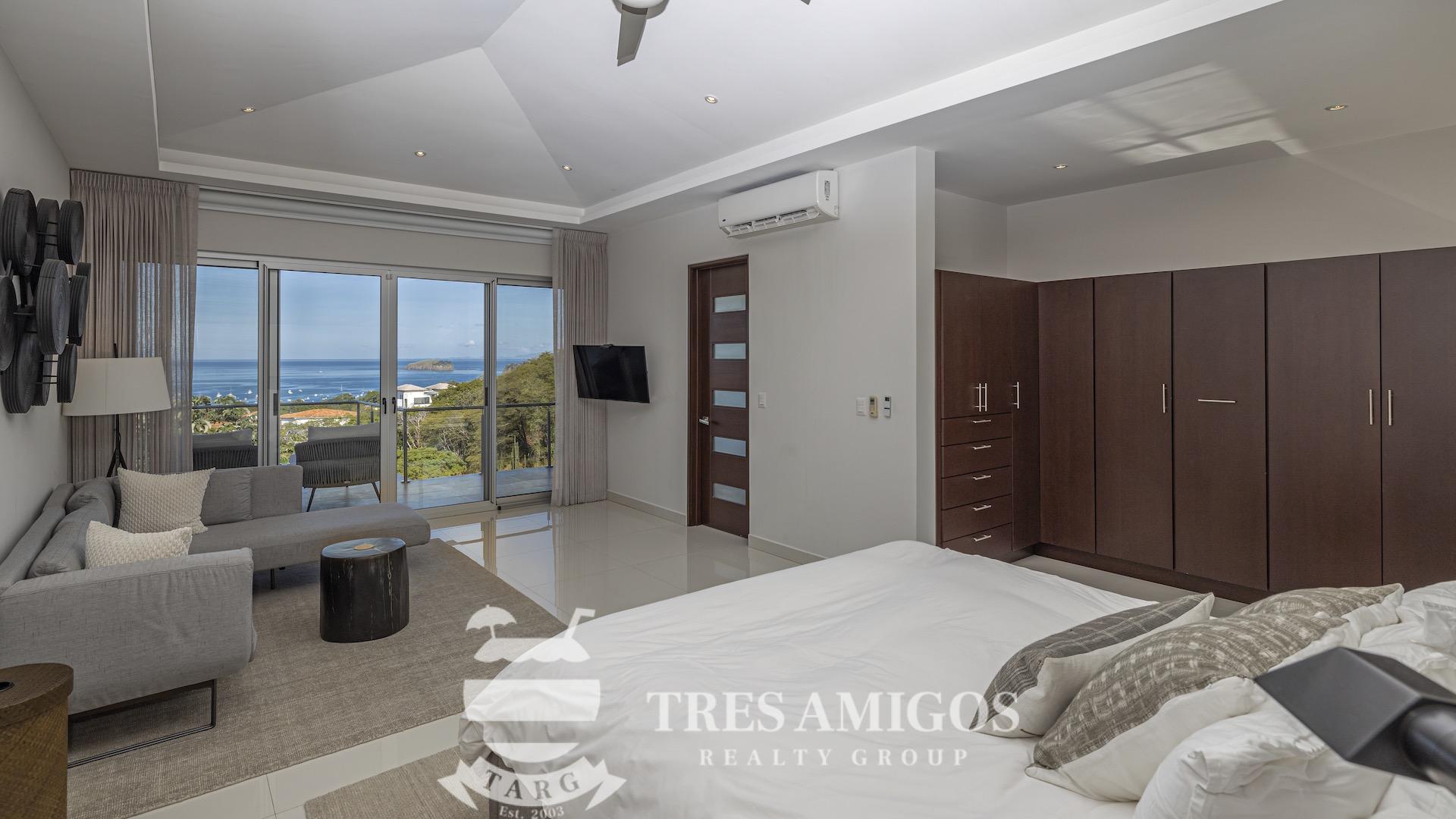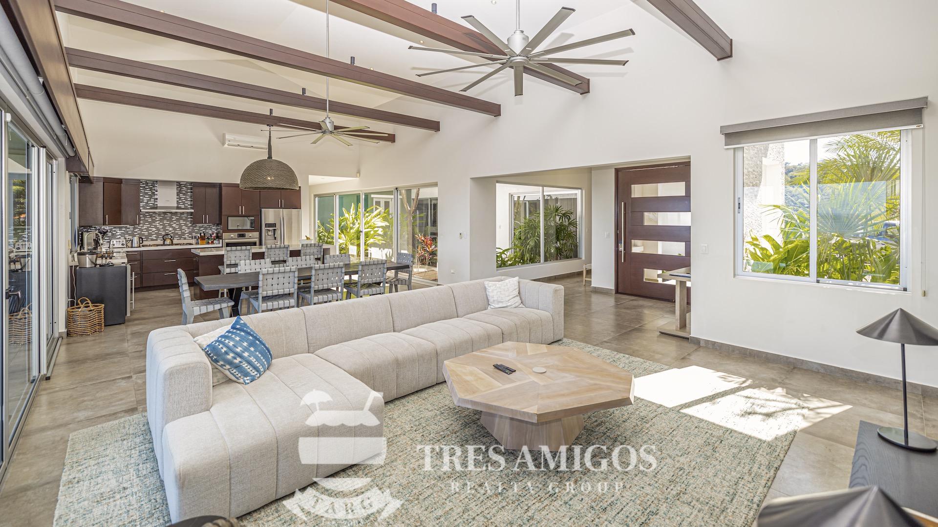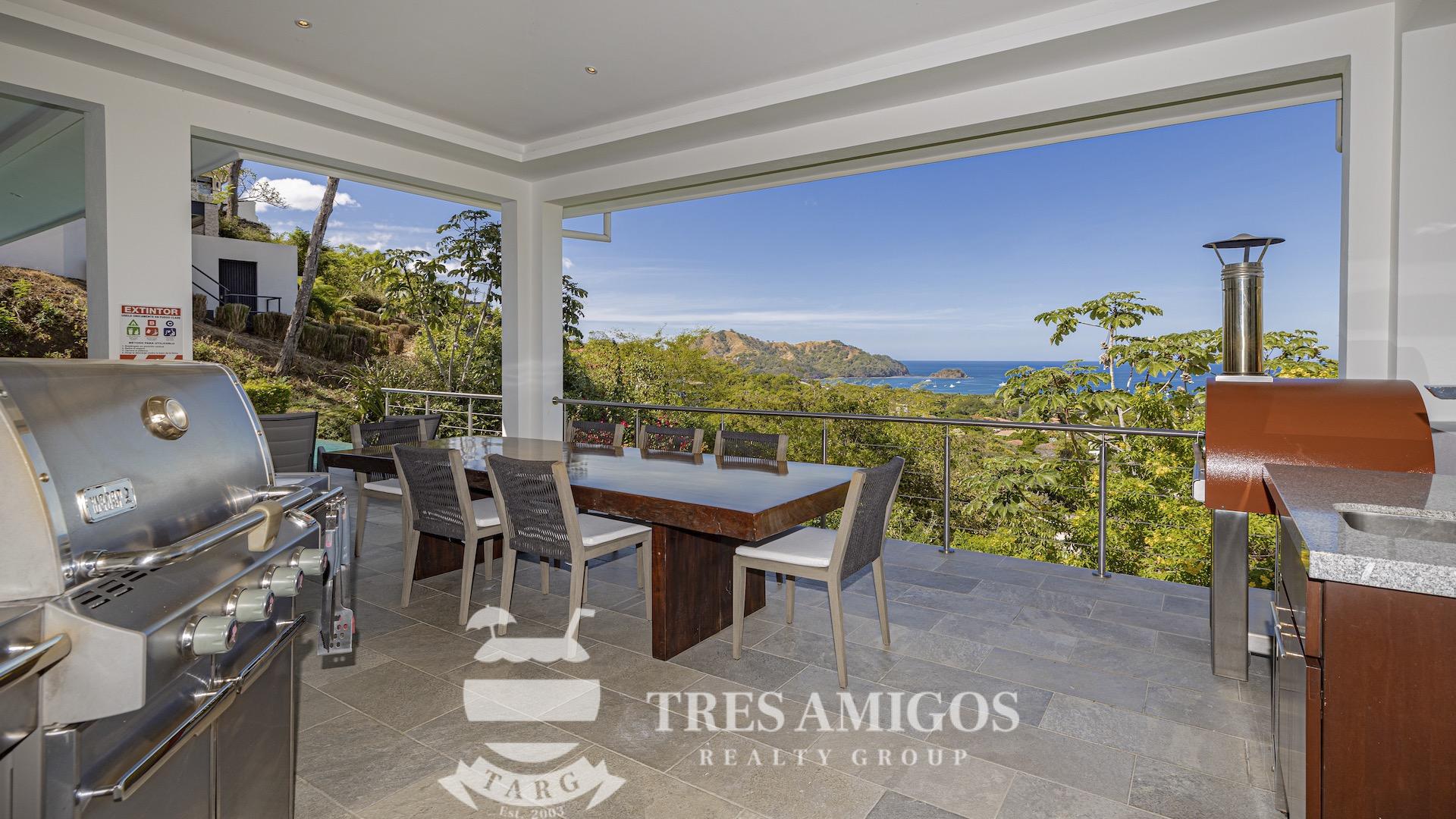 This impeccably built luxury residence offers 3,700 square feet of air-conditioned living space on a generous 1,834 square meter lot within the private, gated Pacifico community, boasting commanding ocean views over Playas del Coco and the Golfo Papagayo while remaining just minutes from the charm and conveniences of this vibrant beach town and nearby coastal destinations. Designed as an open-concept home for both refined living and effortless entertaining, the main living, dining, and kitchen areas flow seamlessly together and open directly onto the expansive pool terrace, creating a perfect indoor–outdoor lifestyle. The home features an infinity-edge pool, outdoor jacuzzi, sauna with full bath, and a lower ocean-view terrace, complemented by multiple shaded terraces with lounge areas, separate dining areas both indoors and outdoors on the shaded terrace, an outdoor grill, and a wood-fired pizza oven. A large internal Zen garden provides a tranquil architectural focal point, beautifully connecting the great room with the air-conditioned media and game room, which also offers the flexibility to be converted into an additional bedroom. The property includes a fully equipped main kitchen plus an additional full kitchen, an expansive second-floor primary suite with stunning views, and three additional en-suite bedrooms on the main level, all generously sized to accommodate king beds. Additional highlights include a Sonos sound system, attached two-car garage, high-quality construction and finishes throughout, full air conditioning, and a triple filtration and water softening system delivering bottled-water quality from every tap. Ideally located just minutes from multiple beach towns and a full array of services including shopping, dining, nightlife, watersports, medical and dental care, and only 25 minutes from Guanacaste International Airport (LIR), owners also enjoy access to Pacifico’s exceptional amenities and the exclusive Pacifico Beach Club with direct access to the sandy beaches of Playas del Coco, oceanfront dining, and resort-style pools and lounge areas, completing a truly elevated coastal lifestyle.