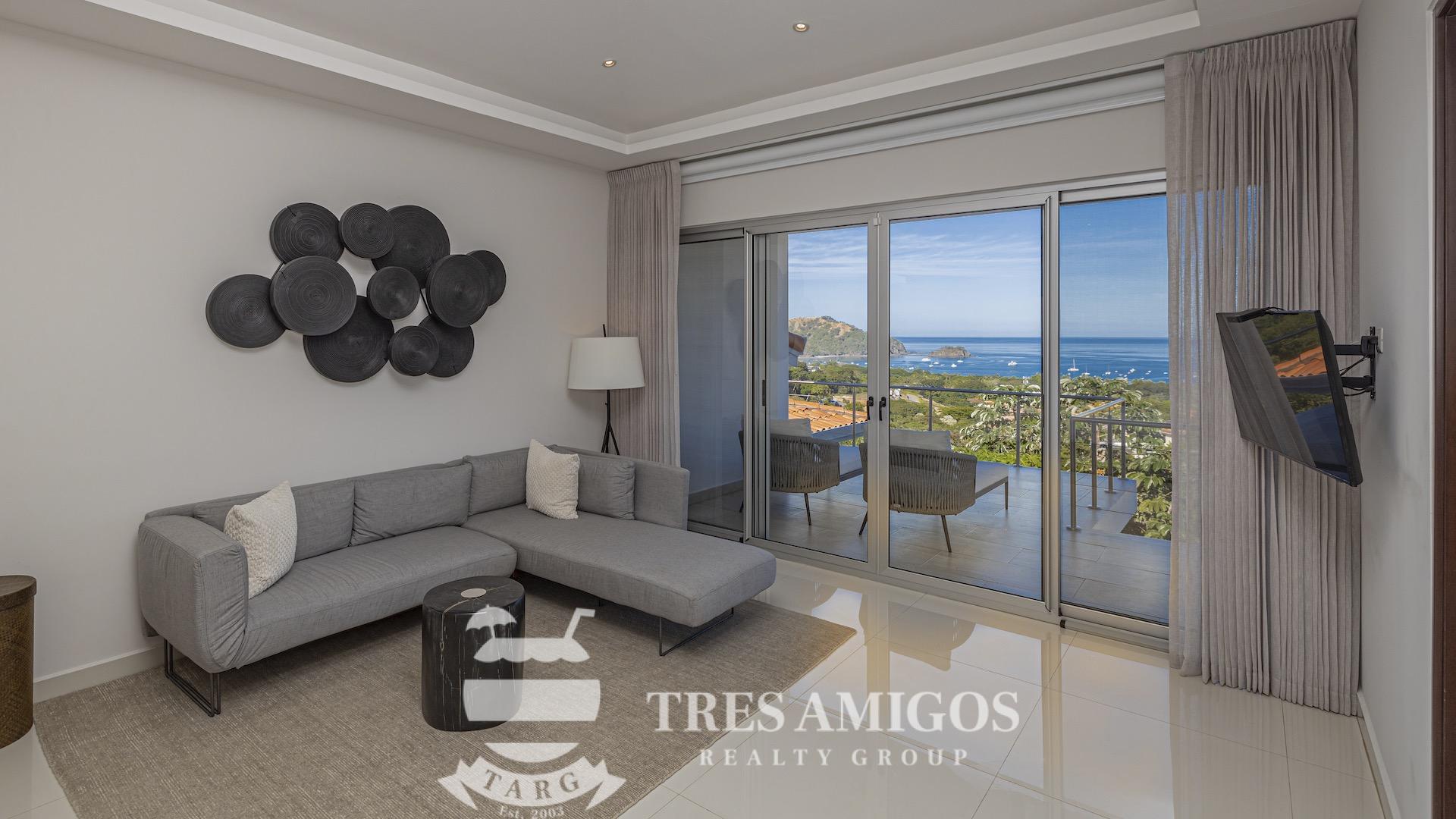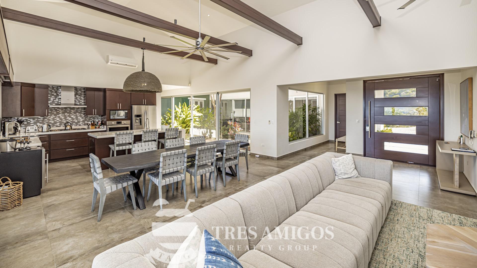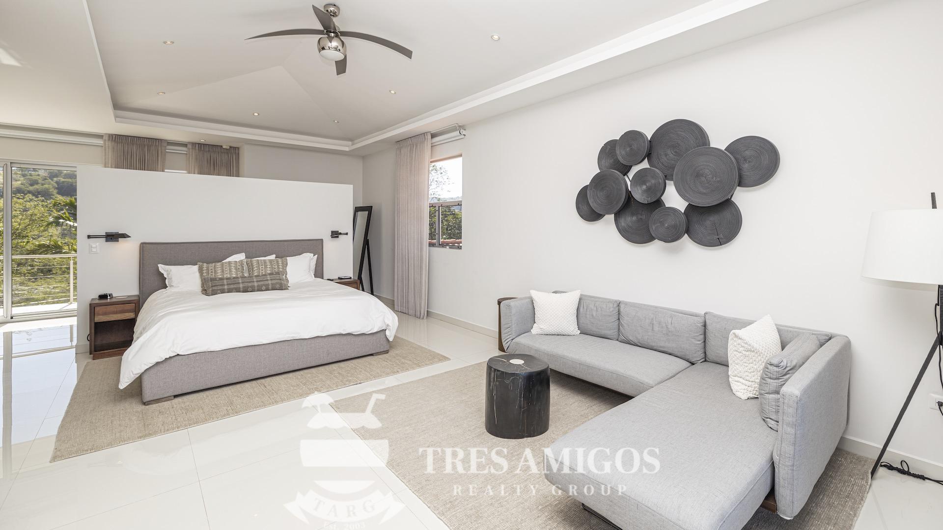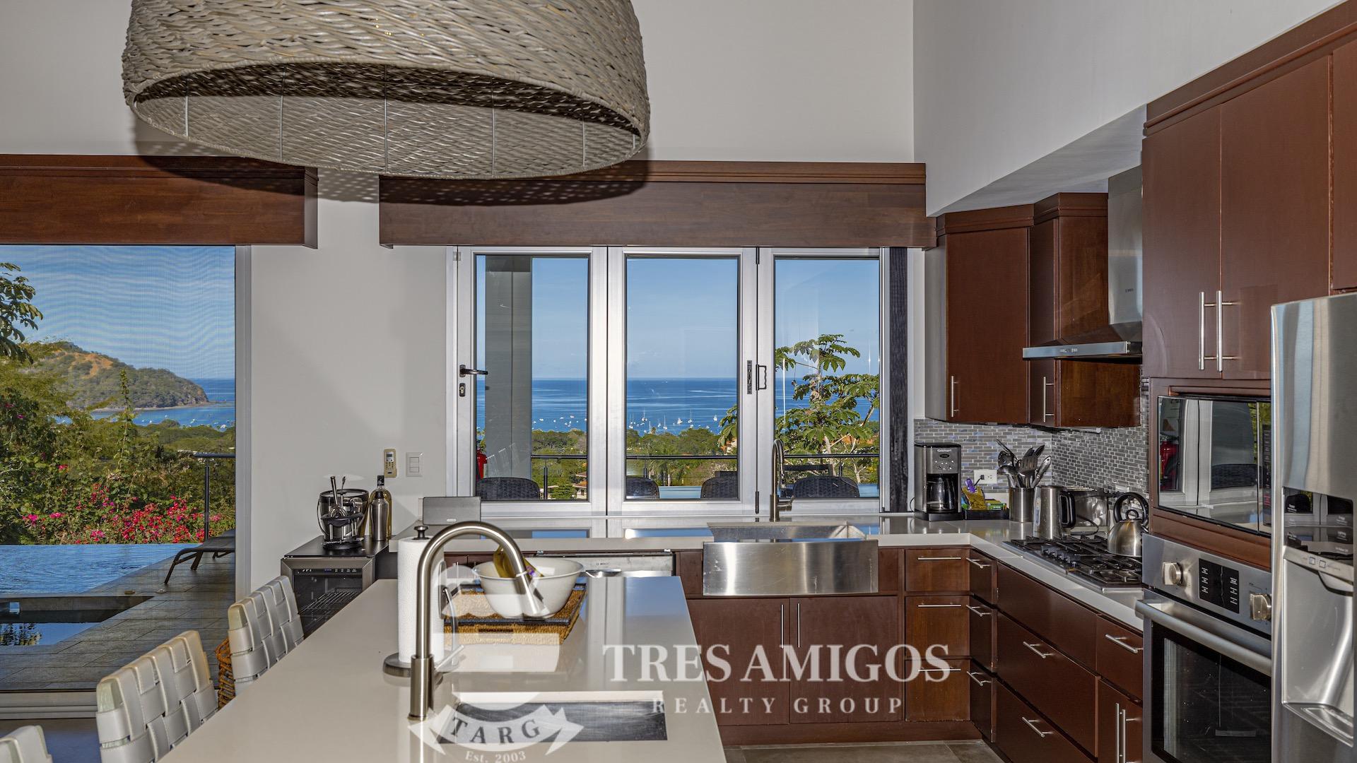 This impeccably built luxury residence offers 3,700 square feet of air-conditioned living space on a generous 1,834 square meter lot within the private, gated Pacifico community, boasting commanding ocean views over Playas del Coco and the Golfo Papagayo while remaining just minutes from the charm and conveniences of this vibrant beach town and nearby coastal destinations. Designed as an open-concept home for both refined living and effortless entertaining, the main living, dining, and kitchen areas flow seamlessly together and open directly onto the expansive pool terrace, creating a perfect indoor–outdoor lifestyle. The home features an infinity-edge pool, outdoor jacuzzi, sauna with full bath, and a lower ocean-view terrace, complemented by multiple shaded terraces with lounge areas, separate dining areas both indoors and outdoors on the shaded terrace, an outdoor grill, and a wood-fired pizza oven. A large internal Zen garden provides a tranquil architectural focal point, beautifully connecting the great room with the air-conditioned media and game room, which also offers the flexibility to be converted into an additional bedroom. The property includes a fully equipped main kitchen plus an additional full kitchen, an expansive second-floor primary suite with stunning views, and three additional en-suite bedrooms on the main level, all generously sized to accommodate king beds. Additional highlights include a Sonos sound system, attached two-car garage, high-quality construction and finishes throughout, full air conditioning, and a triple filtration and water softening system delivering bottled-water quality from every tap. Ideally located just minutes from multiple beach towns and a full array of services including shopping, dining, nightlife, watersports, medical and dental care, and only 25 minutes from Guanacaste International Airport (LIR), owners also enjoy access to Pacifico’s exceptional amenities and the exclusive Pacifico Beach Club with direct access to the sandy beaches of Playas del Coco, oceanfront dining, and resort-style pools and lounge areas, completing a truly elevated coastal lifestyle.