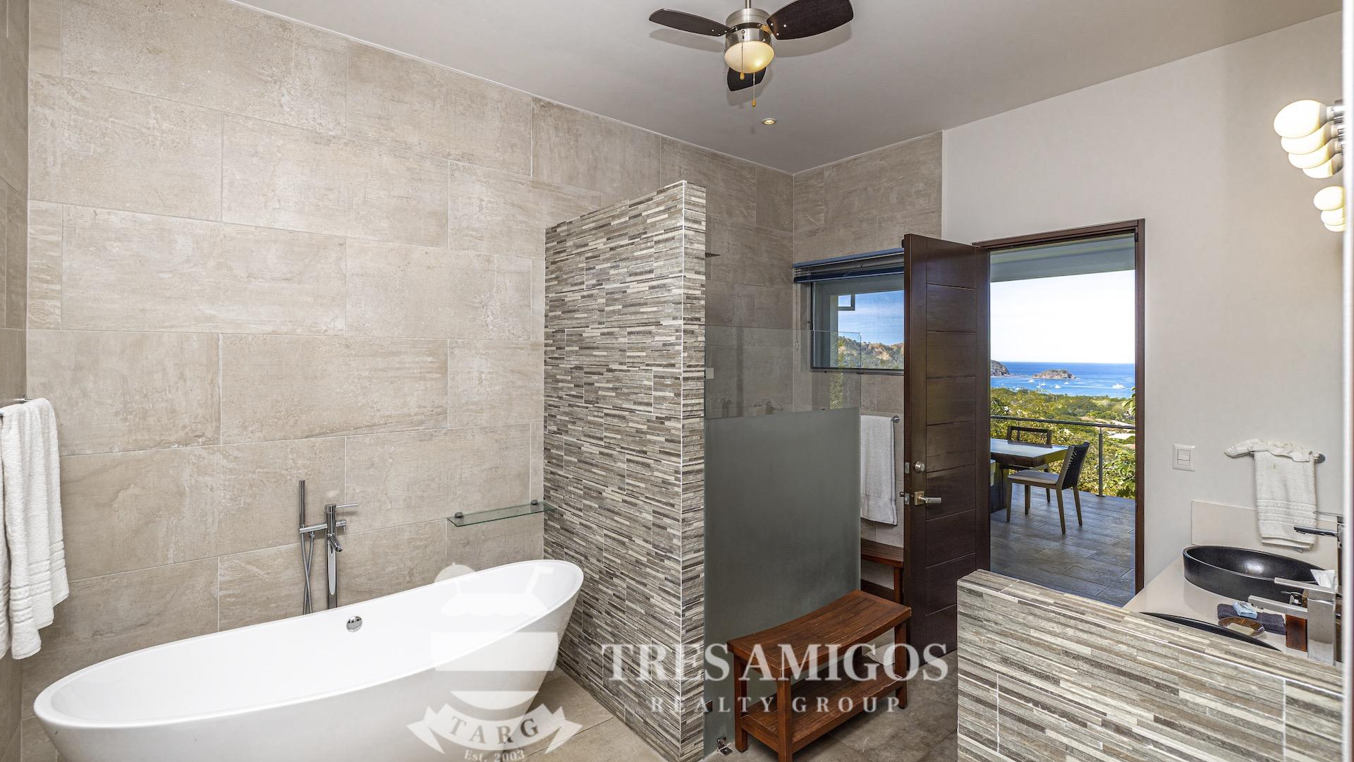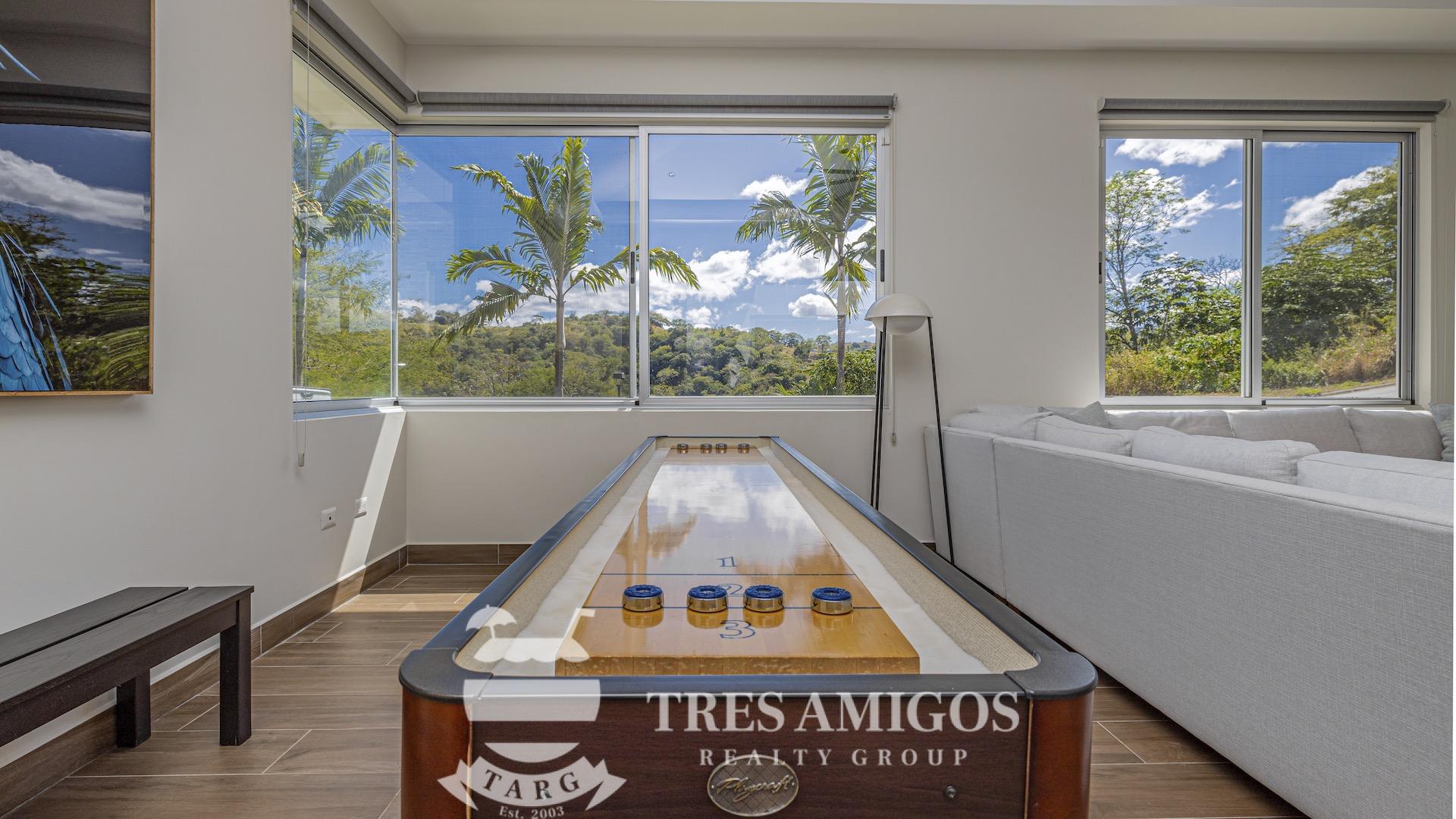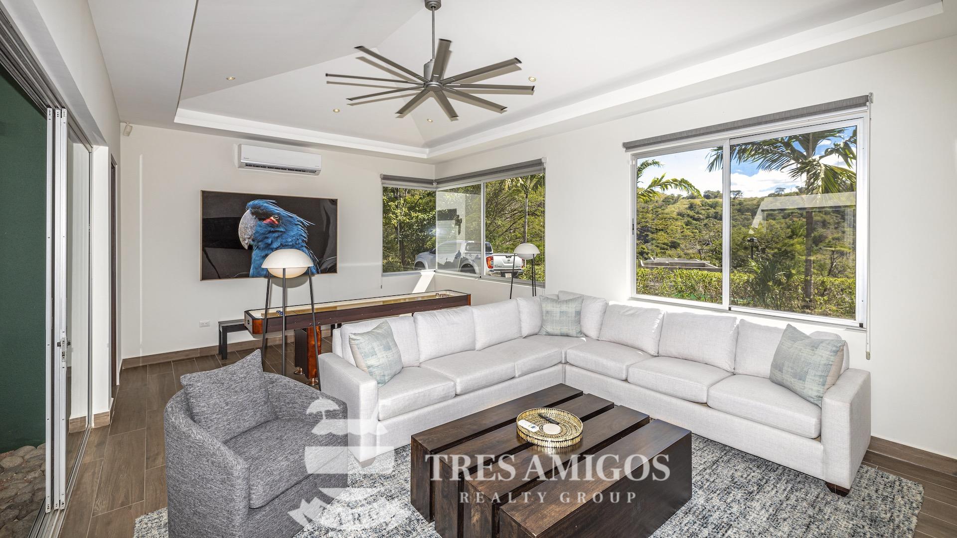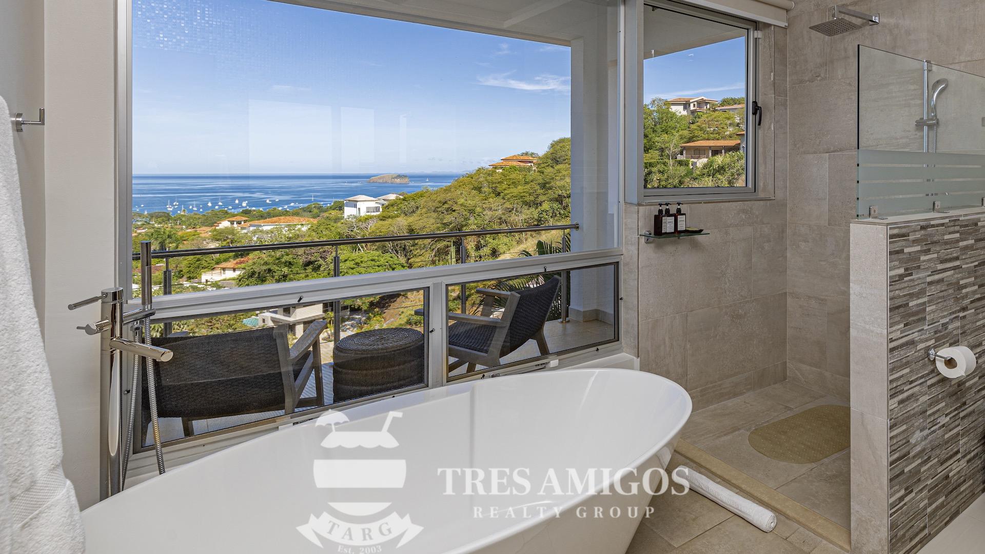 This impeccably built luxury residence offers 3,700 square feet of air-conditioned living space on a generous 1,834 square meter lot within the private, gated Pacifico community, boasting commanding ocean views over Playas del Coco and the Golfo Papagayo while remaining just minutes from the charm and conveniences of this vibrant beach town and nearby coastal destinations. Designed as an open-concept home for both refined living and effortless entertaining, the main living, dining, and kitchen areas flow seamlessly together and open directly onto the expansive pool terrace, creating a perfect indoor–outdoor lifestyle. The home features an infinity-edge pool, outdoor jacuzzi, sauna with full bath, and a lower ocean-view terrace, complemented by multiple shaded terraces with lounge areas, separate dining areas both indoors and outdoors on the shaded terrace, an outdoor grill, and a wood-fired pizza oven. A large internal Zen garden provides a tranquil architectural focal point, beautifully connecting the great room with the air-conditioned media and game room, which also offers the flexibility to be converted into an additional bedroom. The property includes a fully equipped main kitchen plus an additional full kitchen, an expansive second-floor primary suite with stunning views, and three additional en-suite bedrooms on the main level, all generously sized to accommodate king beds. Additional highlights include a Sonos sound system, attached two-car garage, high-quality construction and finishes throughout, full air conditioning, and a triple filtration and water softening system delivering bottled-water quality from every tap. Ideally located just minutes from multiple beach towns and a full array of services including shopping, dining, nightlife, watersports, medical and dental care, and only 25 minutes from Guanacaste International Airport (LIR), owners also enjoy access to Pacifico’s exceptional amenities and the exclusive Pacifico Beach Club with direct access to the sandy beaches of Playas del Coco, oceanfront dining, and resort-style pools and lounge areas, completing a truly elevated coastal lifestyle.