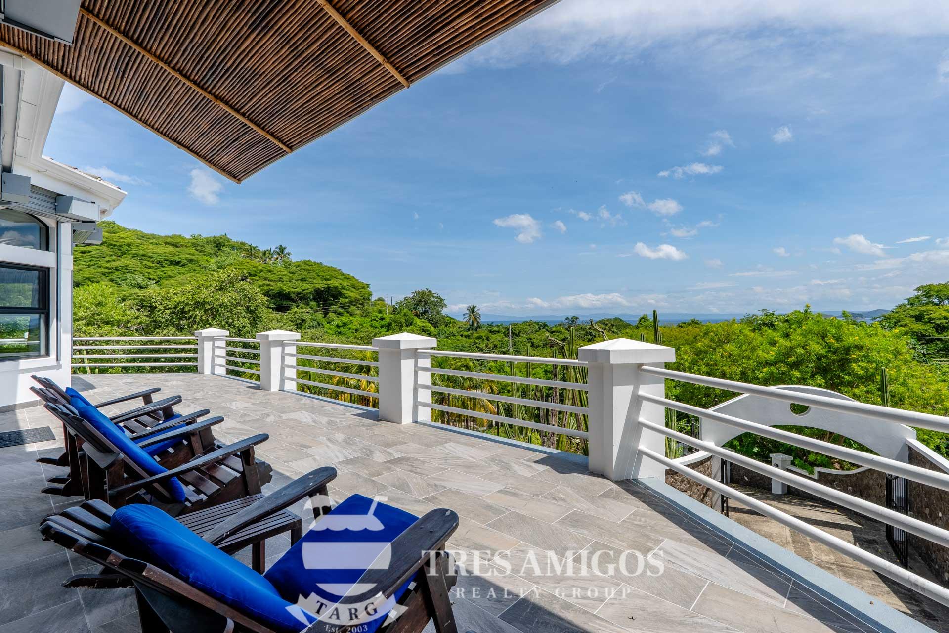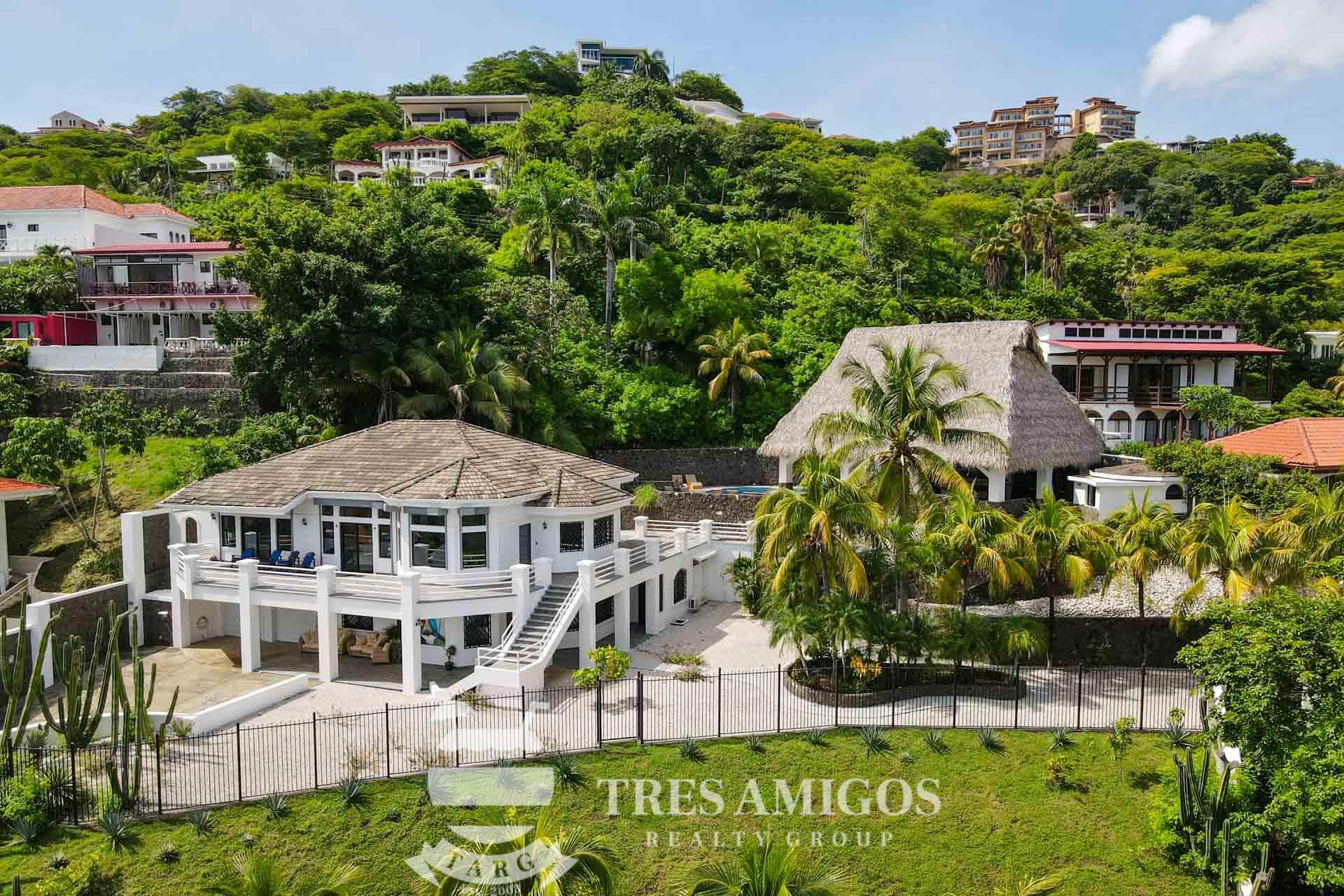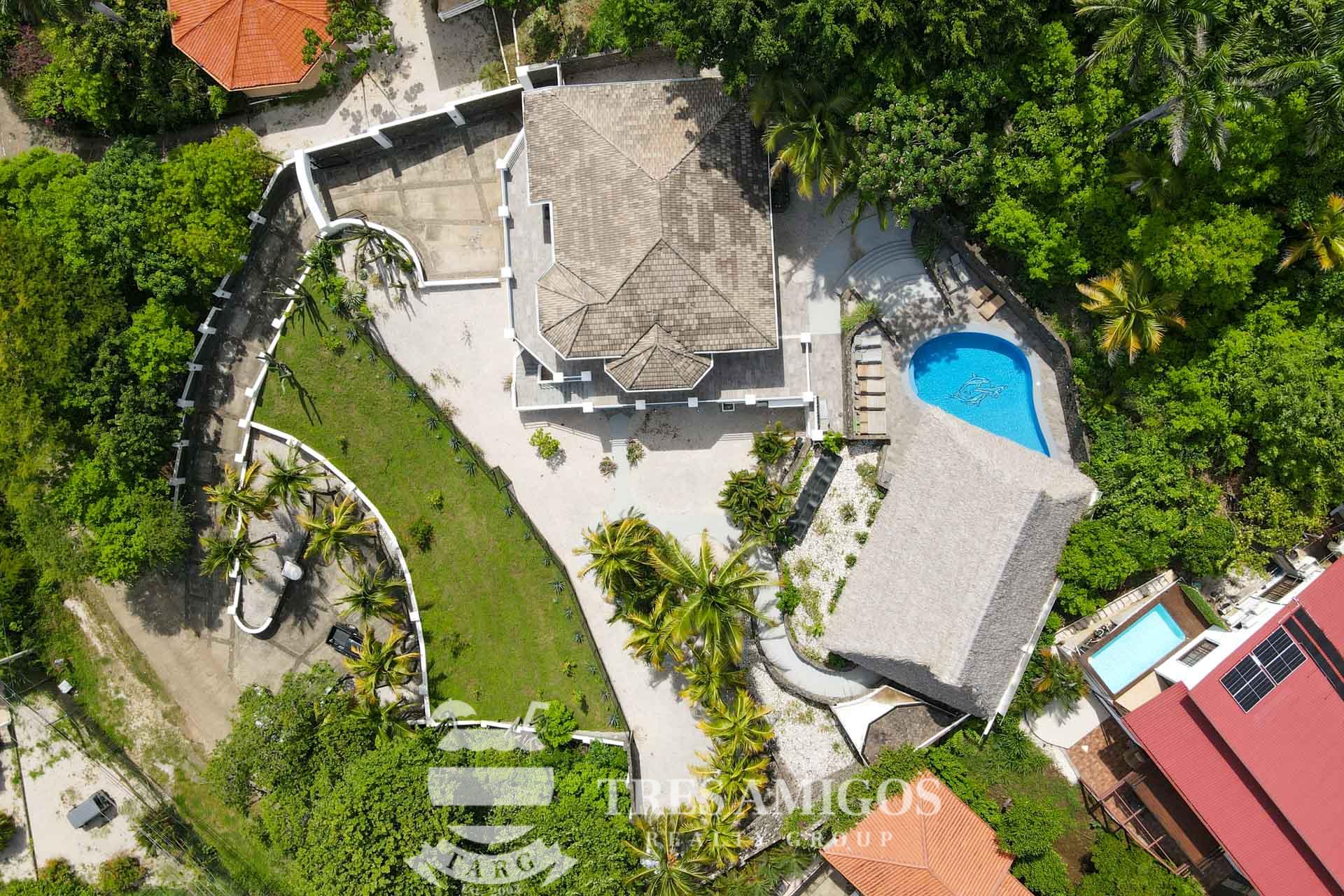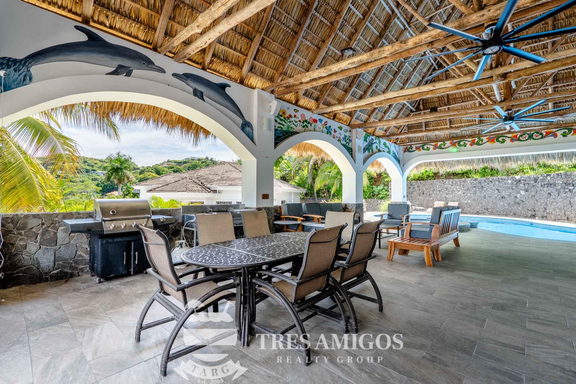 The property’s best feature is the impressive, open-air pavilion. Situated on the highest tier of the estate, this grand structure features a beautiful thatched roof and is a complete entertainment hub. It includes a full-service bar, a kitchen, a bathroom, and multiple zones for lounging, recreation, and fitness. The pavilion overlooks a large swimming pool, a heated jacuzzi, and a sun-drenched deck—all offering ocean views. The lower level of the villa provides a two-car garage with a large, secure storage room. It also houses a fully independent guest suite with its own kitchen, dining area, bedroom, and bathroom. Adjacent to this apartment is an additional bedroom with a private ensuite. Crafted for large gatherings, Villa Perfecta Vida is perfectly suited for family and friends seeking to enjoy Costa Rica’s idyllic climate. The professionally landscaped, terraced gardens provide a tranquil and secluded atmosphere. With over 8,700 square feet of total living space, including the 3,490-square-foot outdoor terraces and pavilion, this home provides immense scale. The property also features a diesel generator, reserve water system and a pool heater for ultimate comfort.
