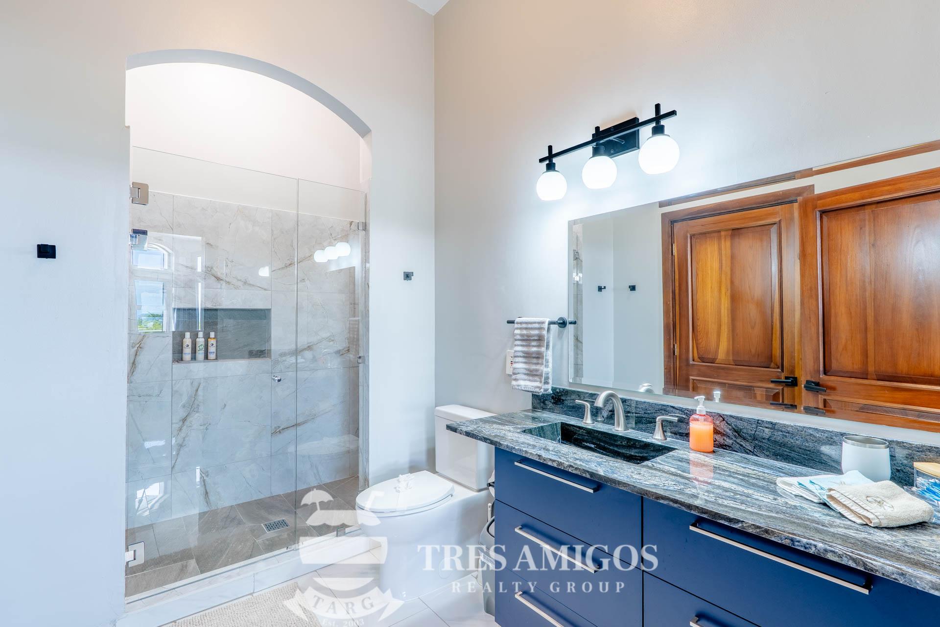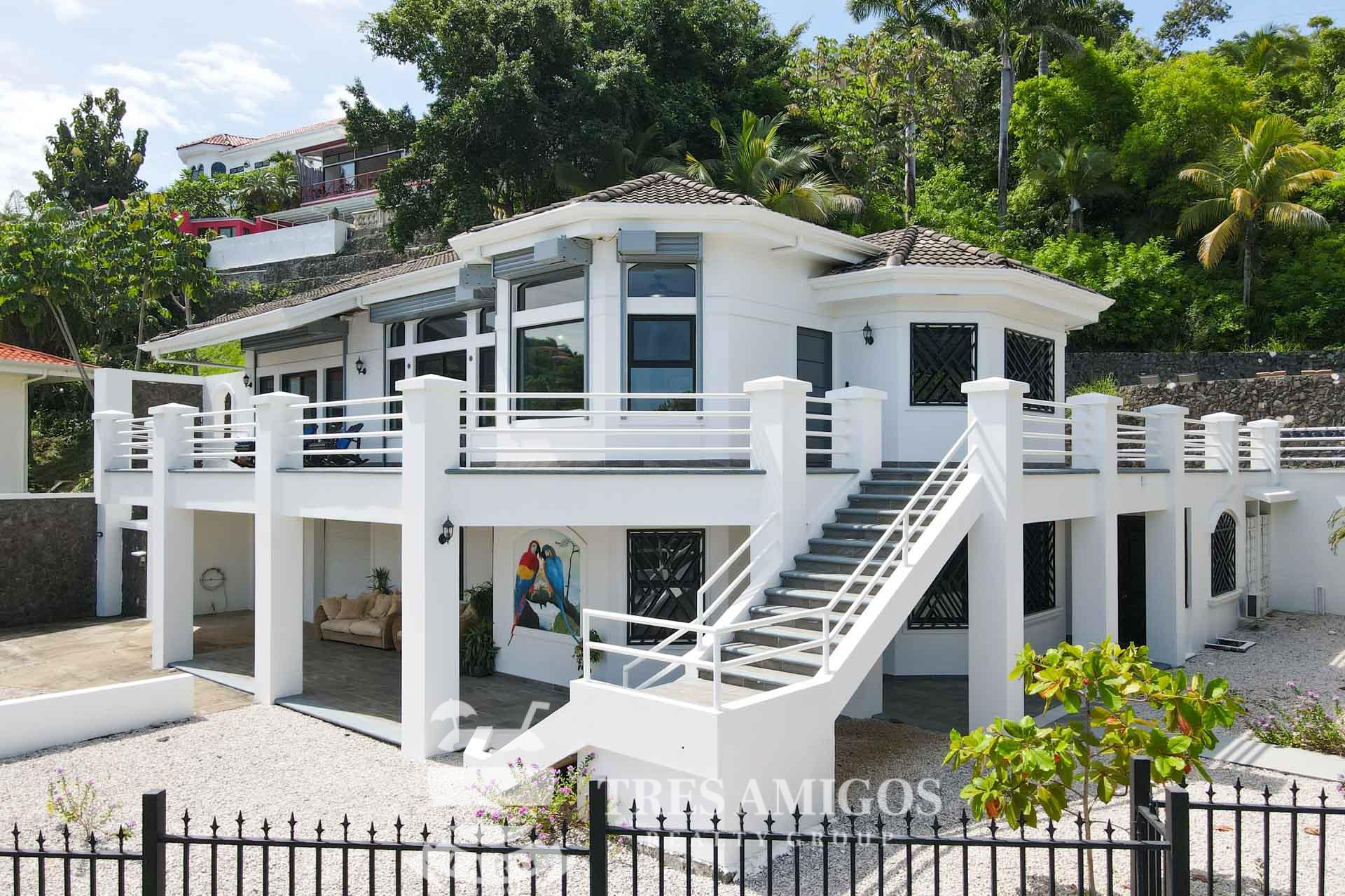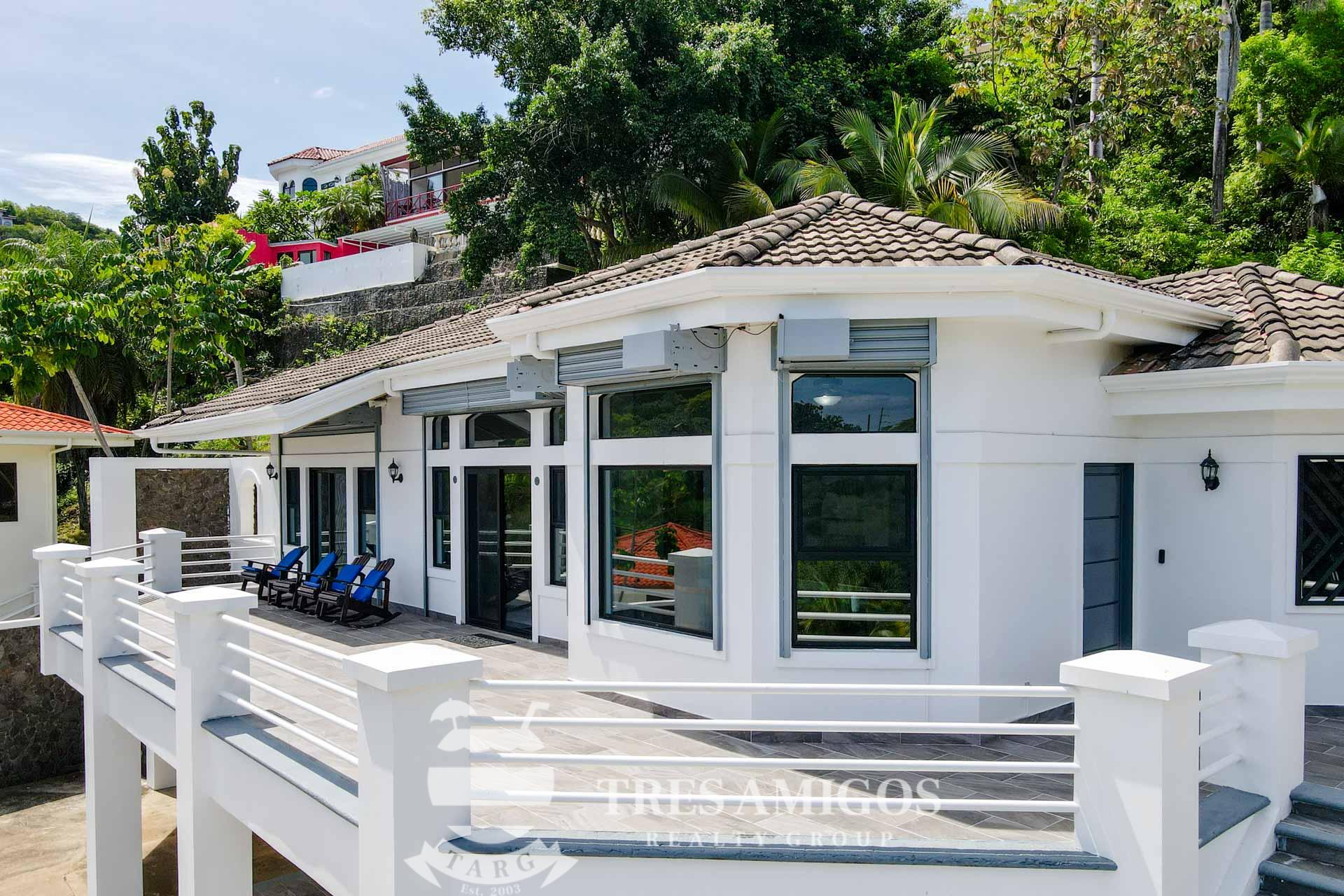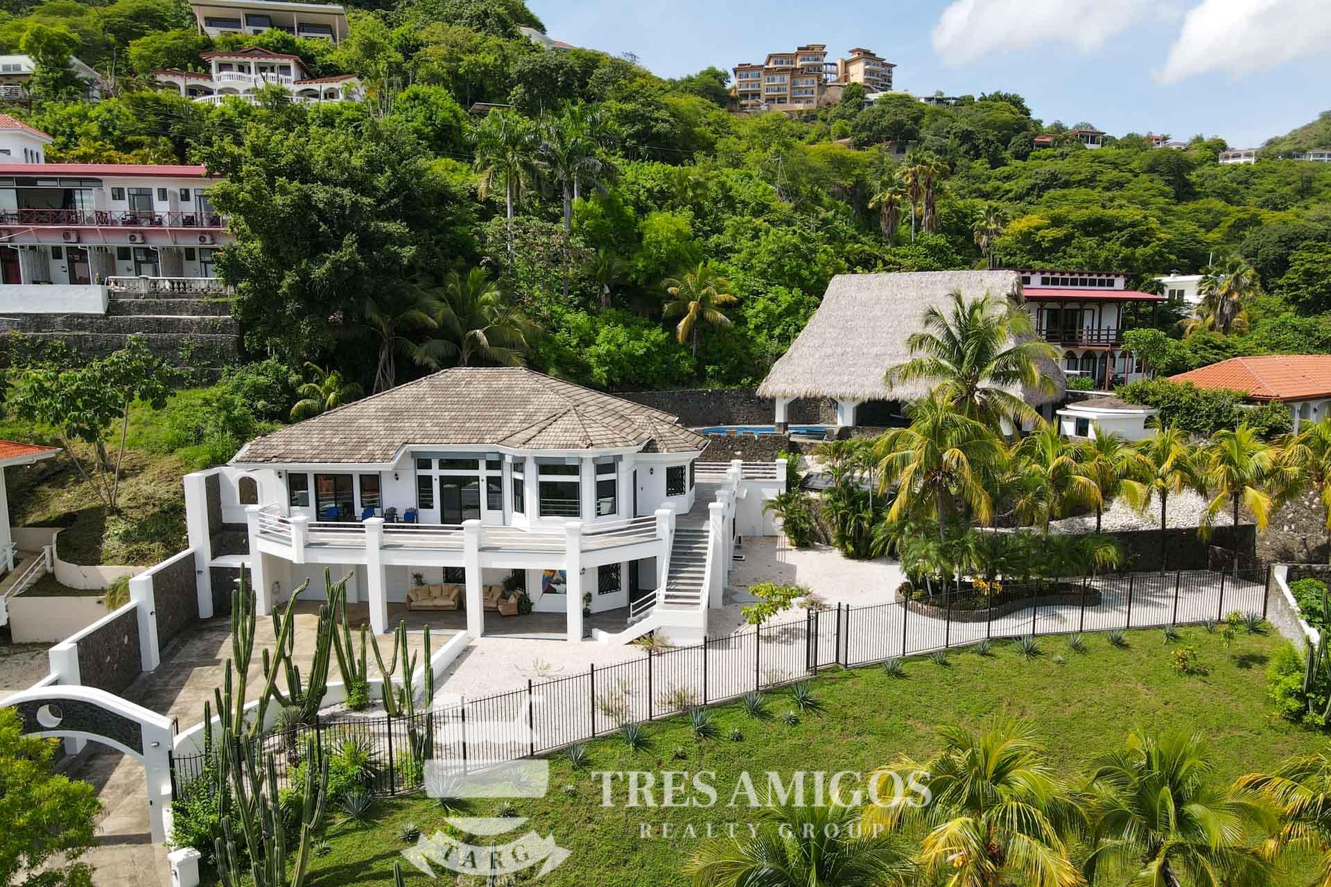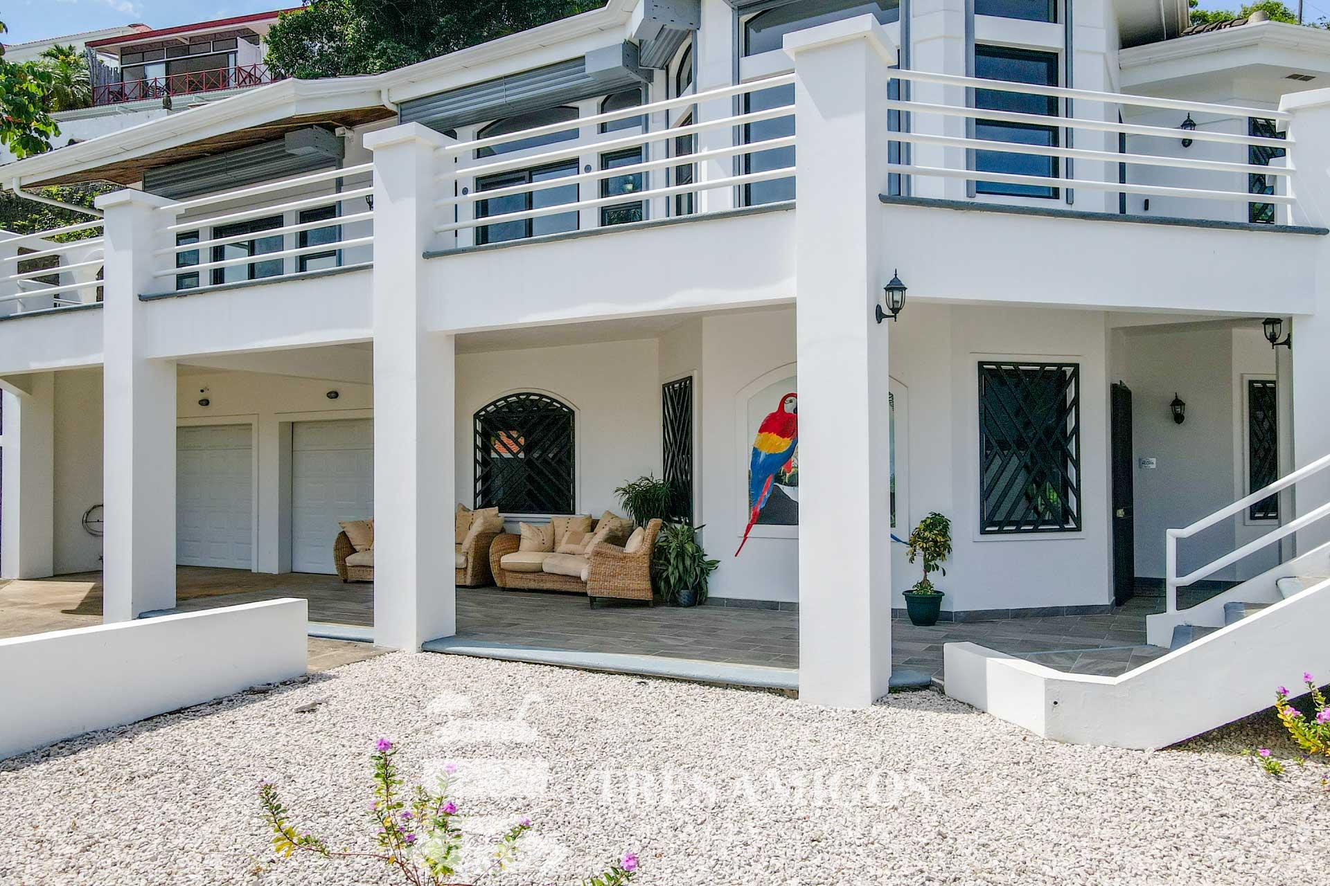 The property’s best feature is the impressive, open-air pavilion. Situated on the highest tier of the estate, this grand structure features a beautiful thatched roof and is a complete entertainment hub. It includes a full-service bar, a kitchen, a bathroom, and multiple zones for lounging, recreation, and fitness. The pavilion overlooks a large swimming pool, a heated jacuzzi, and a sun-drenched deck—all offering ocean views. The lower level of the villa provides a two-car garage with a large, secure storage room. It also houses a fully independent guest suite with its own kitchen, dining area, bedroom, and bathroom. Adjacent to this apartment is an additional bedroom with a private ensuite. Crafted for large gatherings, Villa Perfecta Vida is perfectly suited for family and friends seeking to enjoy Costa Rica’s idyllic climate. The professionally landscaped, terraced gardens provide a tranquil and secluded atmosphere. With over 8,700 square feet of total living space, including the 3,490-square-foot outdoor terraces and pavilion, this home provides immense scale. The property also features a diesel generator, reserve water system and a pool heater for ultimate comfort.
