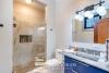 The upper level is the heart of the home, meticulously designed to create a seamless flow between indoor and outdoor living. A grand living area, flooded with natural light, opens directly onto an expansive, wraparound terrace, providing multiple vantage points to savor the ocean views. The gourmet kitchen, a chef’s dream, is equipped with top-of-the-line appliances and connects effortlessly to the sophisticated dining room and living space. This level also includes three spacious bedrooms, each with a full bathroom and huge closet. The primary suite is a true sanctuary, with its own access to the terrace and stunning ocean views.